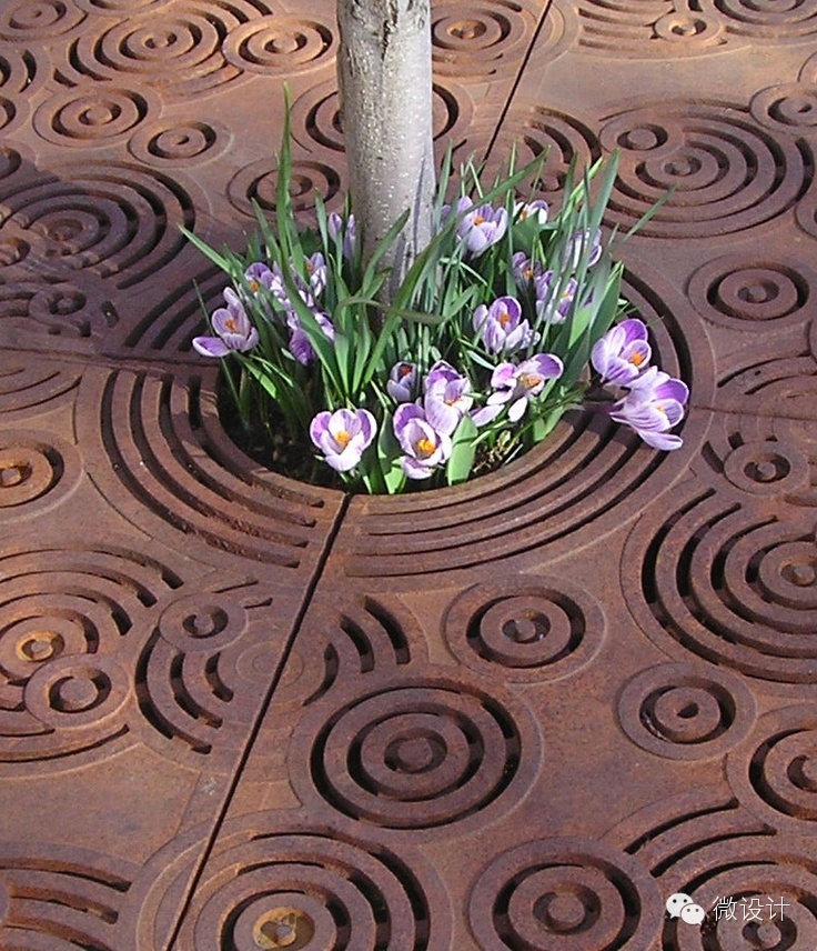 树池盖板虽小,却是高品质景观的一个重要体现。尤其在城市公共空间景观设计中,一款灵动而精致的树池盖板也许能起到画龙点睛之笔,让人眼前一亮。今日微设计特意整理了些许树池篦子的实用案例,与大家共同鉴赏学习。